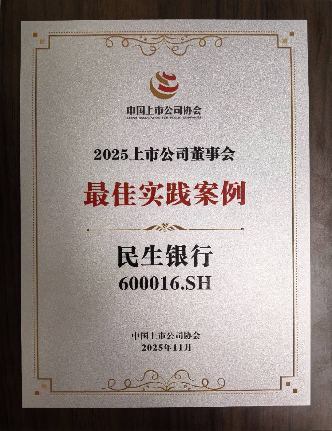 民生银行荣获2025上市公司董事会最佳实践案例