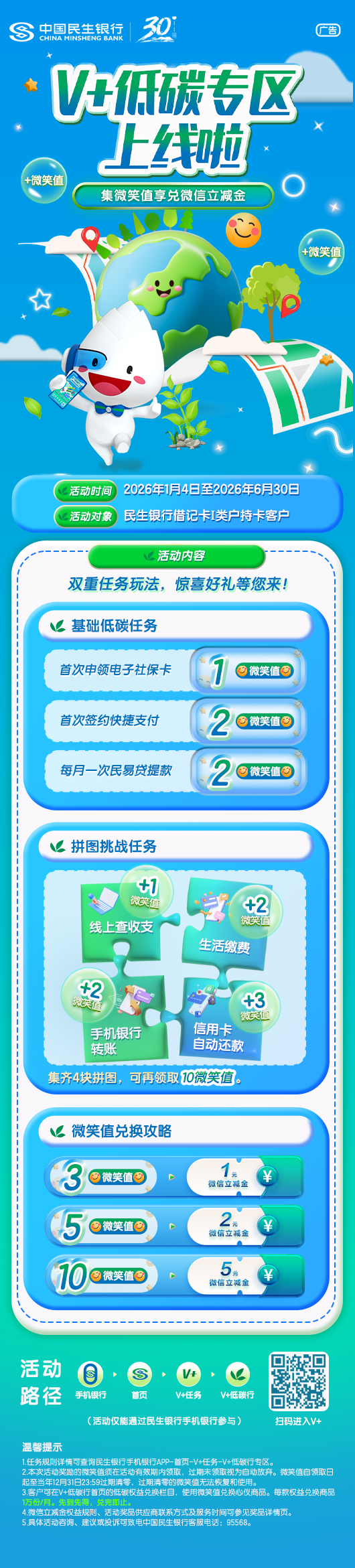 V+低碳专区上线啦 集微笑值享兑微信立减金