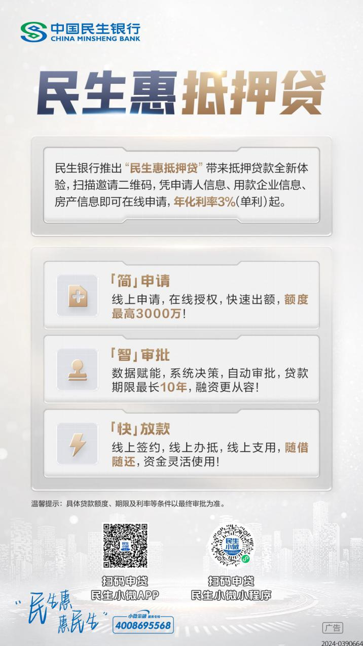 民生惠抵押贷是针对小微客户发放的,以普通住宅为抵押物,采用线上自助申请,系统自动化决策,支持签约、办抵、额度启用、贷款支用等环节的线上办理的经营性贷款。