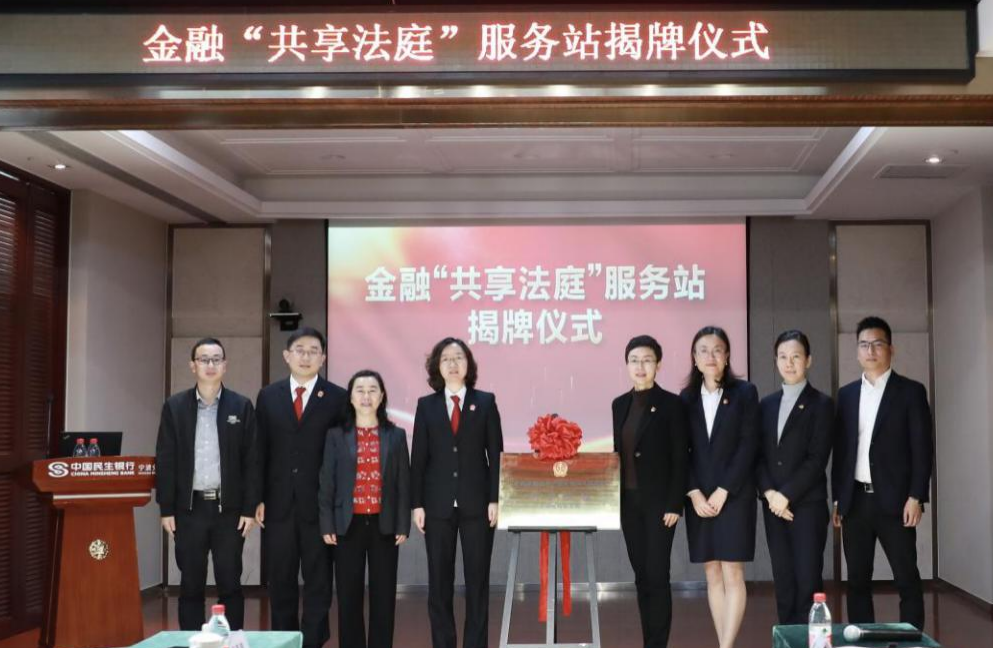4月6日上午,宁波高新区法院、宁波市金融消费纠纷人民调解委员会在中国民生银行股份有限公司宁波分行共同为金融“共享法庭”金融机构服务站揭牌,为高新区法院构建的“1+3+N”金融“共享法庭”立体服务网再添一力。高新区法院党组成员、审委会专职委员夏洁,民生银行宁波分行行长助理岳光春,市金融消费权益保护协会秘书长王彤等出席仪式。